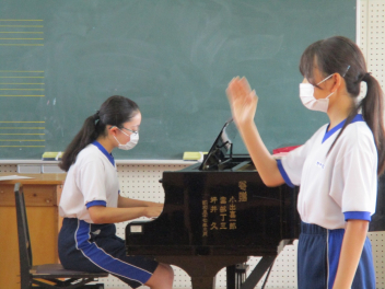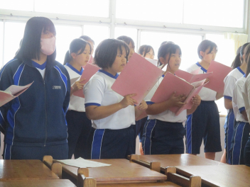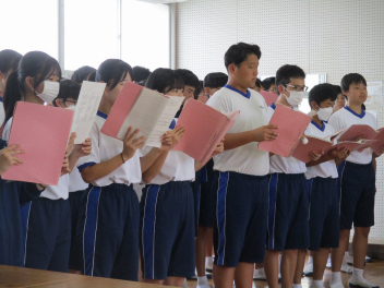 • 体育大会の興奮冷めやらぬ間に、3年生は文化発表会の練習が本格的にスタートしました。学活の時間を使って練習しました。曲は「群青」です。学年主任の先生も生徒に混じって指導をしてくれました。残り15日!1回1回の練習を大切にしながら、3年生の一つになった歌声を下級生にとどけてください。