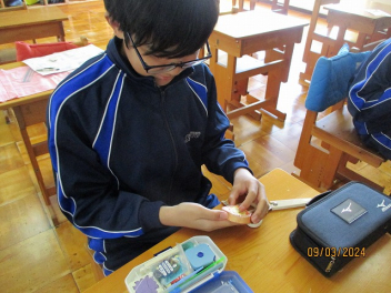 • 本日、今年度最後となる国語の授業を行いました。授業では、漢字の読みや熟語のプリントといった「日々の積み重ね」の総仕上げを行うとともに、一年間の学習を振り返る作文に取り組みました。振り返りの中で、 「物語文を通じて、登場人物の心情を読み取ることの大切さを実感した」という感想が多く寄せられました。一歩ずつ積み上げてきた学びを糧に、次のステップでも言葉の力を大切にしていってほしいと願っています。