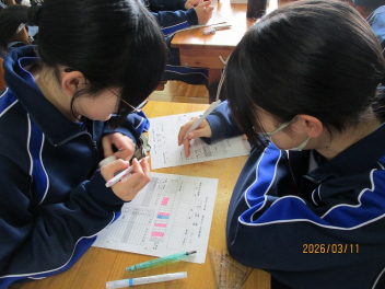 2年生は春休みの計画を立てていました。1日の生活について計画を立てていました。進路に向けて勉強時間を増やしたほうがよいか悩んでいる生徒や友達と話しながらまとめる生徒など、充実した春休みになるよう想像を膨らませて計画していました。