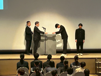 • 浜松市文化・スポーツ賞の授賞式が行われました。本校から男子ソフトテニス部の外山さん、伊藤さん、陸上競技部の芦澤さんが受賞しました。おめでとうございます。