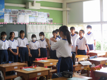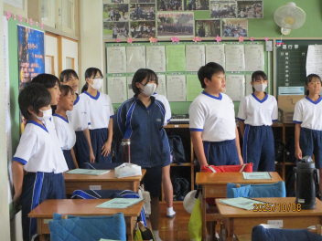 • 1年生マイバラードの練習の様子です。心を一つに歌う楽しさが伝わるように練習しています。指揮者を中心に合わせていました。体育大会で学級全体で培ってきた団結力をさらに高め、聞いている人に学級の歌に込めた想いが伝わるように練習していきましょう。