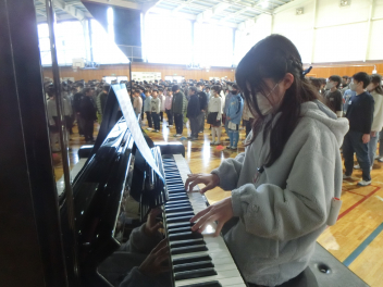 体育館に集まり、6年生代表児童のはつらつとした爽やかな挨拶、表彰に続いて、
