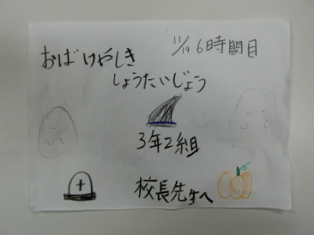• 3年生の子から、「招待状です。来てくださいsad」と渡されたのは・・・
