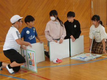 待ち時間を活用して、自分たちの動きについて話し合い、互いに見合っている竹っ子たちがいました