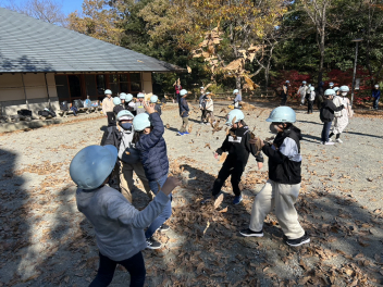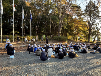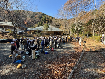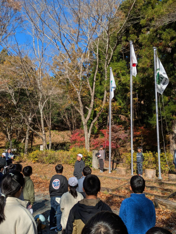 学校からバスでかわな野外活動センターに向かい、到着後すぐに「入所式」を行いました
