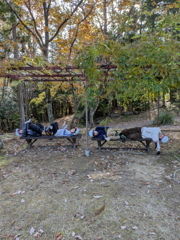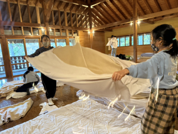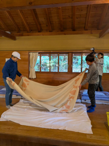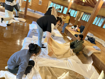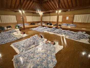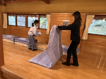 その後、宿泊棟に戻り、友達を協力して寝床の準備をしましたlaugh