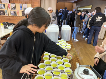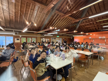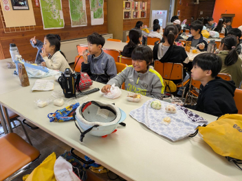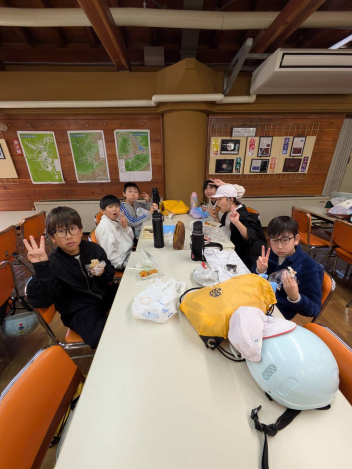 本館の「食堂」にて、グループごとにお弁当を食べましたlaugh