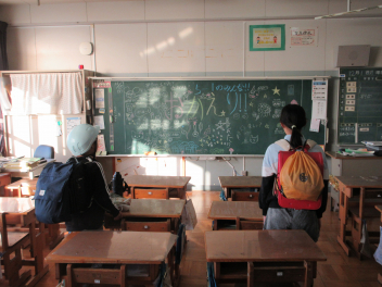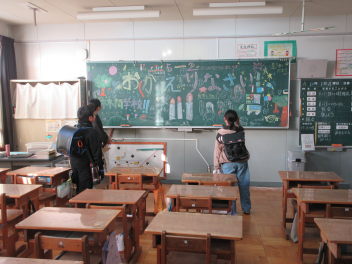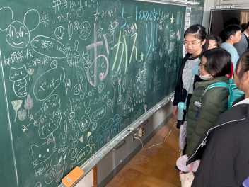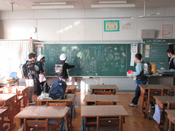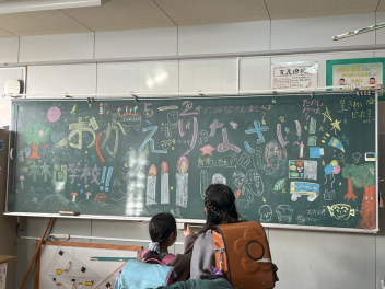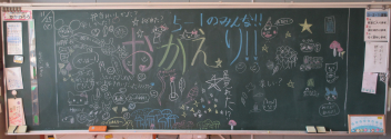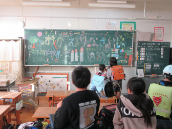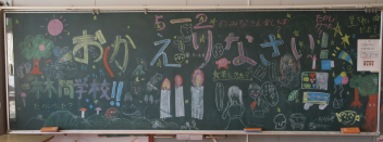 何と、教室の黒板に、6年生からの「おかえりなさい」のメッセージが書かれていましたwink
