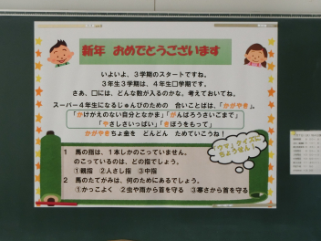 みんなで考えを出し合い、協力して、完成しました。3年生3学期は、4年生0学期。「なりたい自分」を目指して頑張ります。