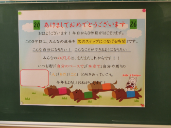 冬休みの出来事を話したり、係決めや席替えをしたりして過ごしましたsad