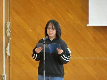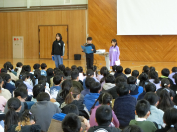 3人の代表児童が、3学期に頑張りたいことを発表しました。