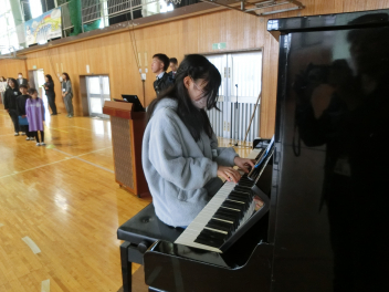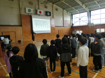 体育館に集まり、6年生代表児童のはつらつとした爽やかな挨拶、表彰に続いて、
