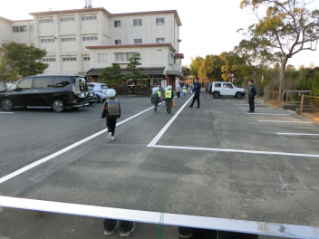 • 正門から昇降口まで、竹っ子たちが歩く通路に線を引きました