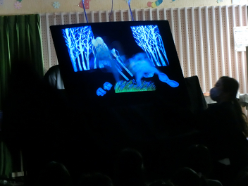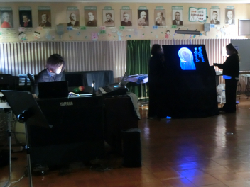 卒業記念おはなし会「ブラックシアター」が開かれました