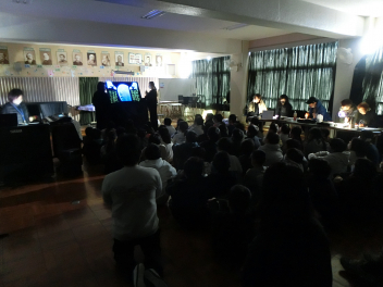 6年生が集まり、照明が消され、いよいよ本番スタート