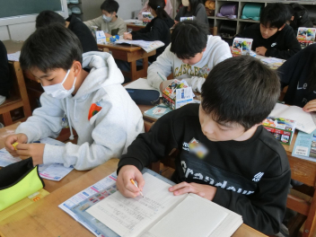 今日は、6年生を送る会のスローガンを決めるために、