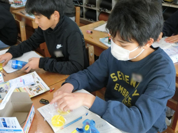 教材セットの部品を確かめながら、実験を進めていました