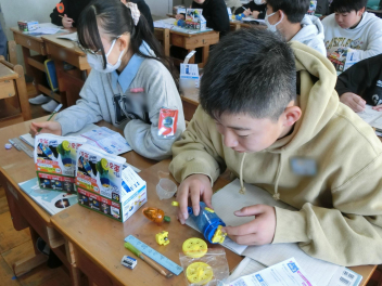 • 理科の学習では、教材を使って、