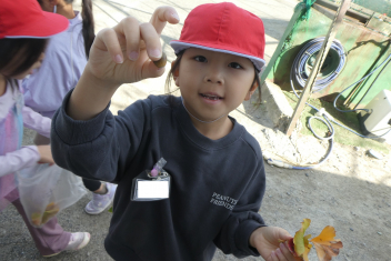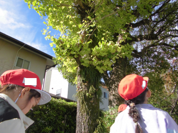 夏の様子と比べ、葉の色が変わっていることや、木の実がたくさん落ちていることに気付きました。