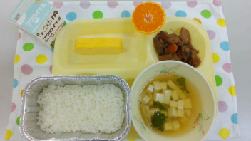 ごはん 牛乳 厚焼き卵 浜納豆煮 すまし汁 みかん