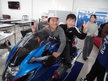 出来上がったバイクを見た後は、体験コーナーで、実際にバイクに乗って楽しむ子も多かったです。