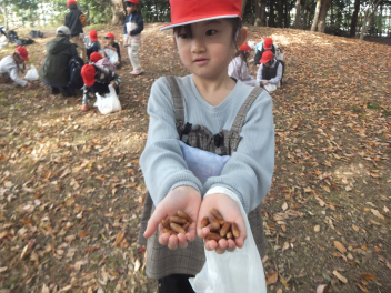 また、どんぐりやまつぼっくり、大きな葉っぱを拾うことができました。