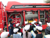 スクール119があり消防署の方から直接お話を聞いたり、消防車を見たりする活動を行いました。