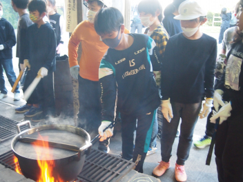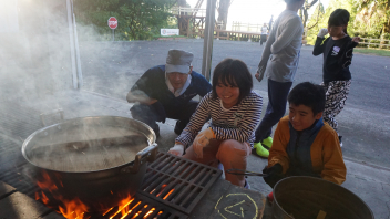 目に染みる煙に負けず、火の番をするかまど係はかっこよかった!!