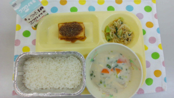 ごはん 牛乳 あじのみそだれかけ 吹きよせ むらくも汁