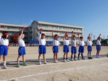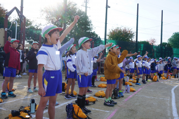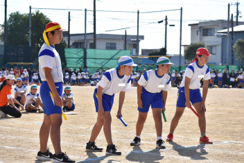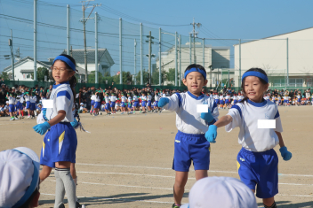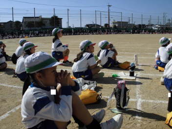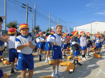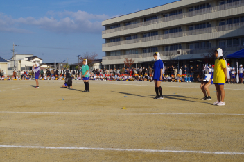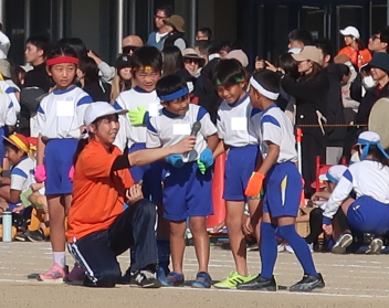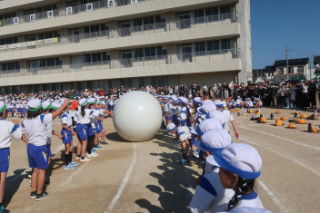 全校種目の大玉転がしでは全学年の協力し合う姿も見られました。