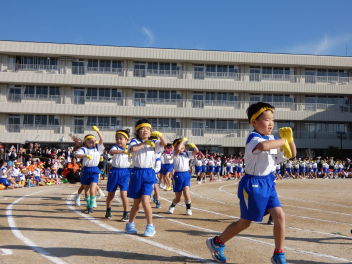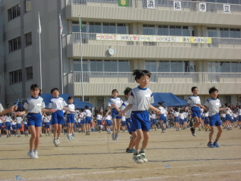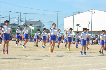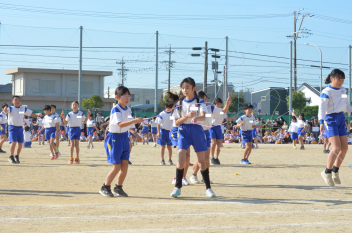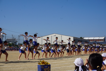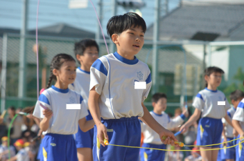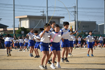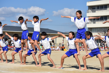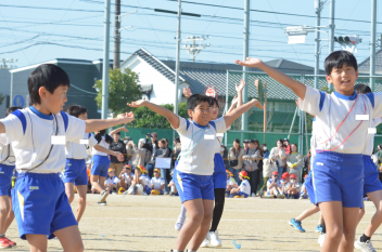 1・2年生のダンス、3・4年生のなわとびダンス、5・6年生の組体操では
