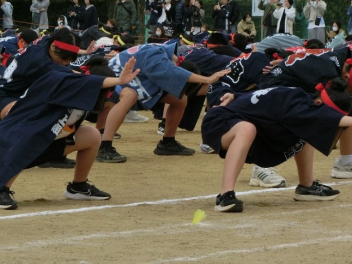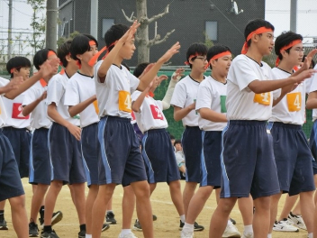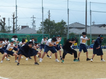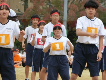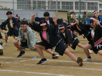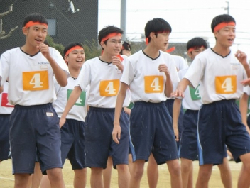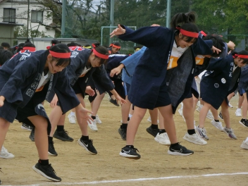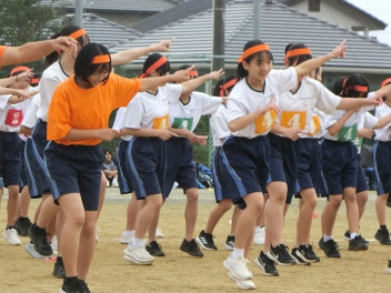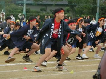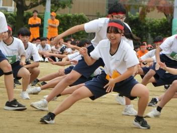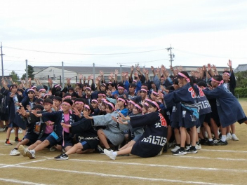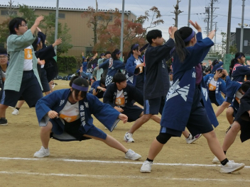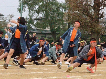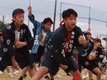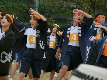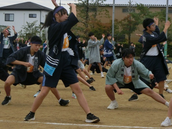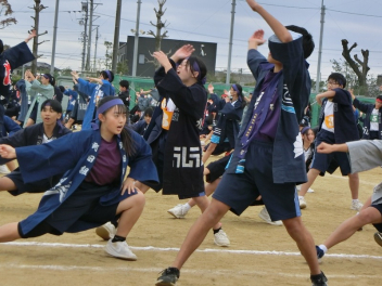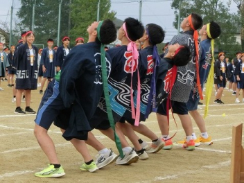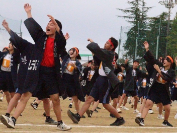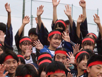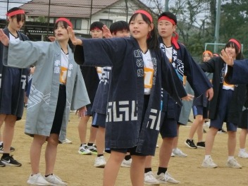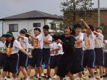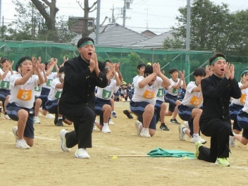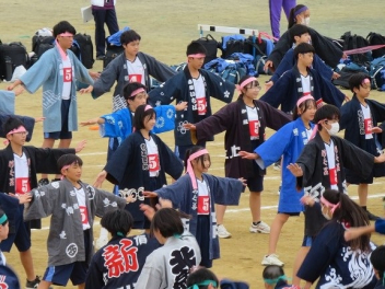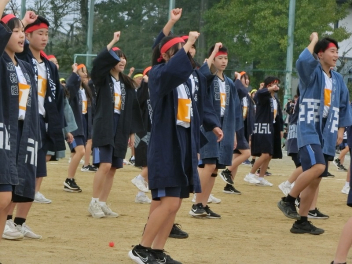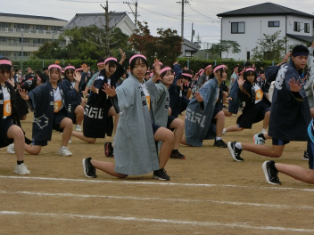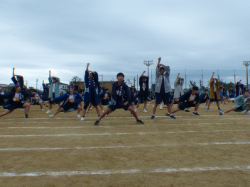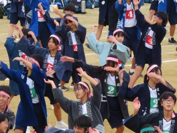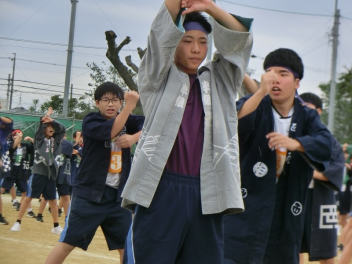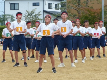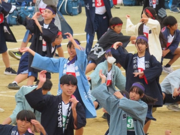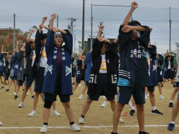 集団パフォーマンスと並ぶ積志中体育大会の目玉は「全校ソーラン」です。