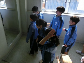 12月8日(月)の放課後、子どもたちが下校した後の南校舎で業者さんに設置をしていただき、9日にはお披露目。