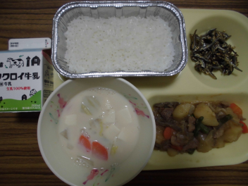 今日のみぞれ汁には、大根おろしの他に、豆腐や油揚げ、にんじん、根深ねぎも入っています。