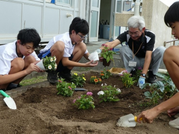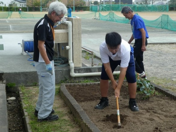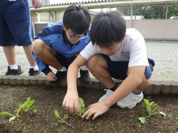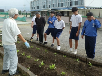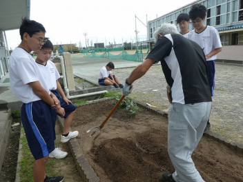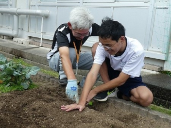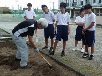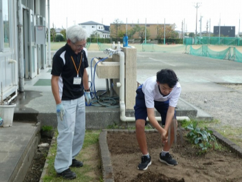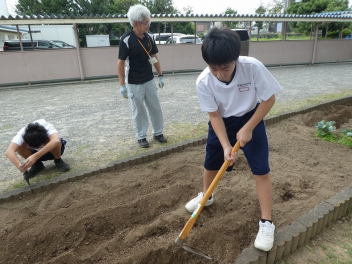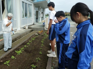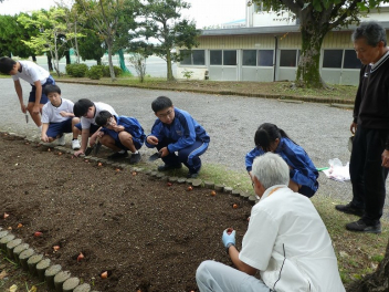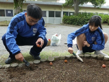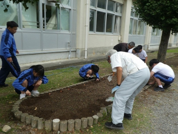 花壇を耕し、大根など野菜の種を蒔き、北校舎の花壇にはチューリップの球根も植えることができました。