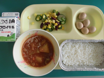 今日の給食のカレーには、大豆も使用しています。大豆は鉄分、カルシウムを多く含むほか、食物繊維も多く含みます。