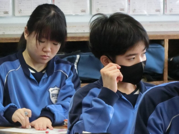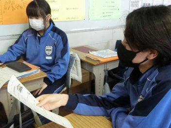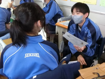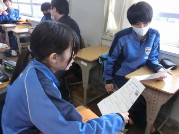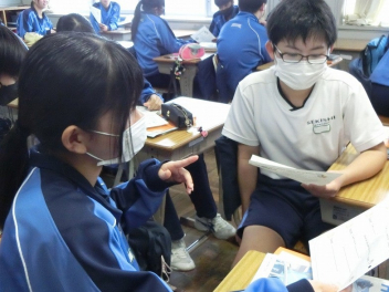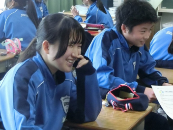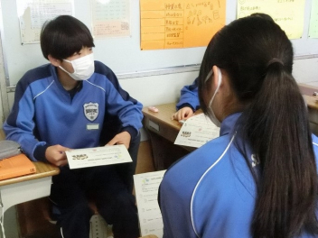 隣同士のペアで英語での会話。