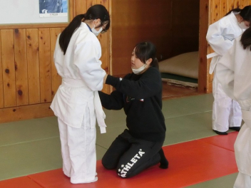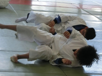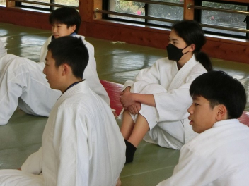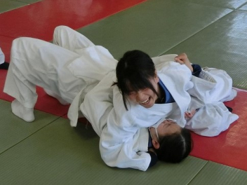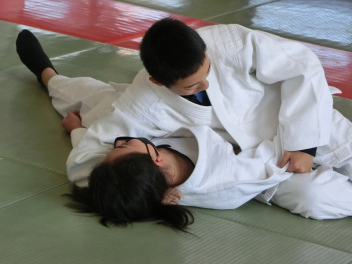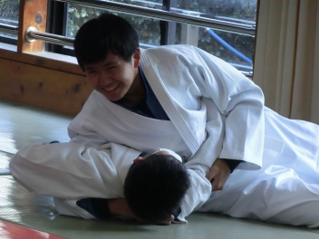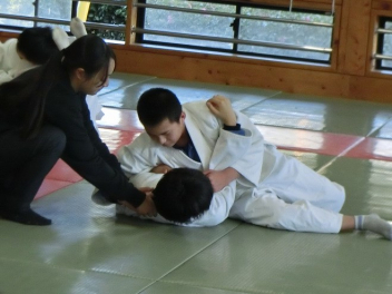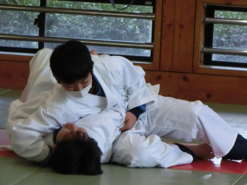 先生の説明と技のポイントを聞き、ペアで寝技に挑戦しました。