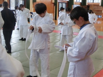 この日は、初めて柔道着に袖を通しました。