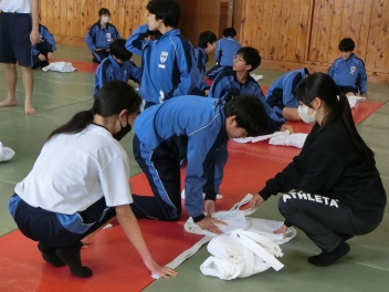 たたみ方も練習したので、今後の柔道の授業は大丈夫ですね。
