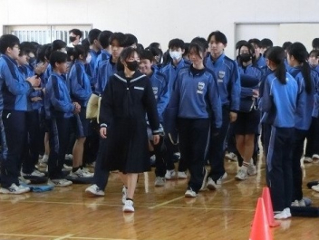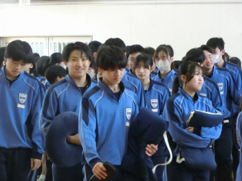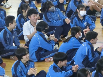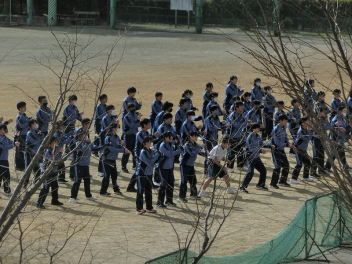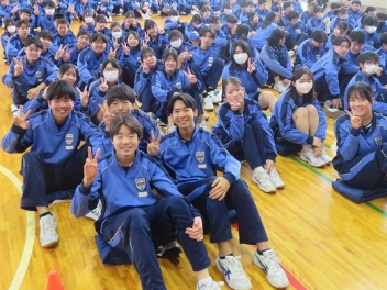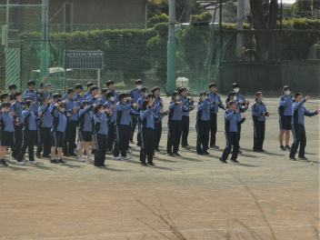 この日のプログラムに後輩からのエールがあり、1、2年生はグランドでリハーサル。