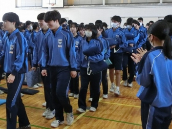3年生が拍手で迎えられました。