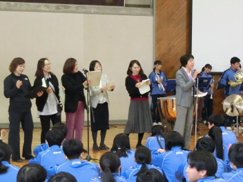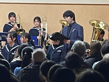 浜松市出身のオペラ歌手、竹内利樹さんの歌や積志ジュニアウインドの演奏、そして積志中学校吹奏楽部が素晴らしいサウンドを響かせ、会場の大勢の聴衆を魅了しました。