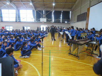 はじめに吹奏楽部のミニコンサート。