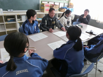 積志中学校防災リーダーの新井先生から講師の先生の紹介をしましたfrown