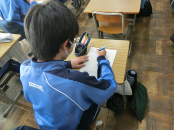「本日は僕たちのために貴重な防災講話をしてくださり本当にありがとうございました。この講話で心に残ったのは、災害が起こったとき、自分の置かれている状況を把握して行動するということです。・・・また、みんなで助け合うことが大切であるということもわかりました。自分も家具の固定など対策を行い、自分の命は自分で守るということも意識して生活していきたいと思います。」