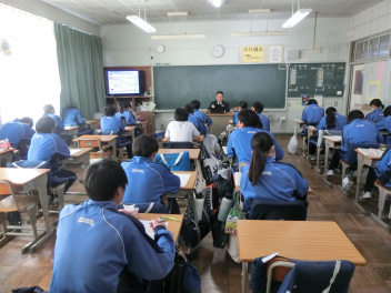 1月30日(金)の6時間目に全校一斉にリモートによる防災講話を行いました。