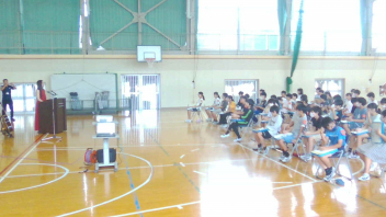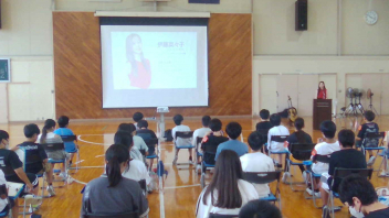 小学生の頃から歌手という職業に憧れていた伊藤さん。自分の思いをつづってきたノートのことや、CD作りのレコーディングの話など、歌手になるために積み重ねてきた努力について、お話ししていただきました。「たくさんの失敗もしたけど、それが全て今の自分に繋がっている。失敗を恐れてやらないのはもったいない。」という伊藤さんの言葉。1学期の全校集会での校長先生の言葉にもありましたね。失敗を恐れずに、いろいろなことにチャレンジしていけるといいですね