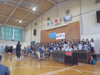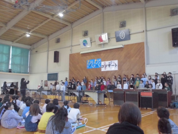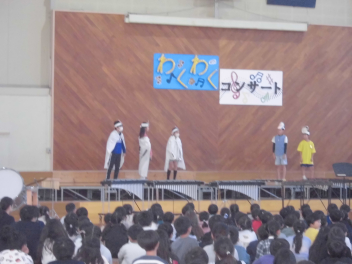 •  「心を一つに みんな笑顔で きれいなメロディー 奏でよう」のスローガンの下練習を重ね、今日本番を迎えました!ステージ上での笑顔、出番を終えてほっとしたような笑顔など、どの子もとても頑張っていました!各学年、学級の頑張りを共有できたわくわくコンサートでした!