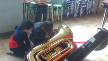 音楽科の「いろいろな音のひびきに親しもう」の学習では、教科書の写真を見るだけでなく実際の楽器に触れてみました。本物に触ることで「吹いてみたい!」「曲を弾いてみたい!」という思いが深まったようです。